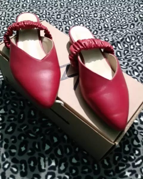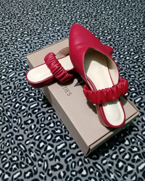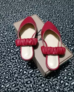 Flats color rojo con resorte en el tobillo, destalonadas.