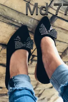 FLATS DE MOÑO. Flats en material sintético buk con aplicación , color negro talla#3 nuevos