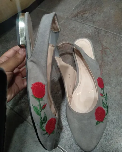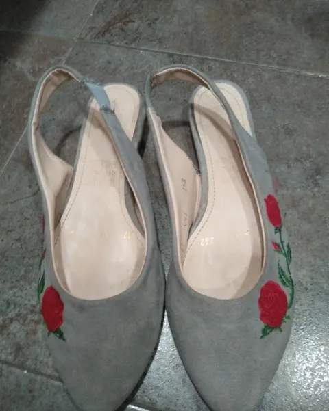 Flats destalonados con bordado. En perfecto estado, para un look casual y andar comodo, en los lados trae unas rosas bordadas quedan de 6.5 a 7