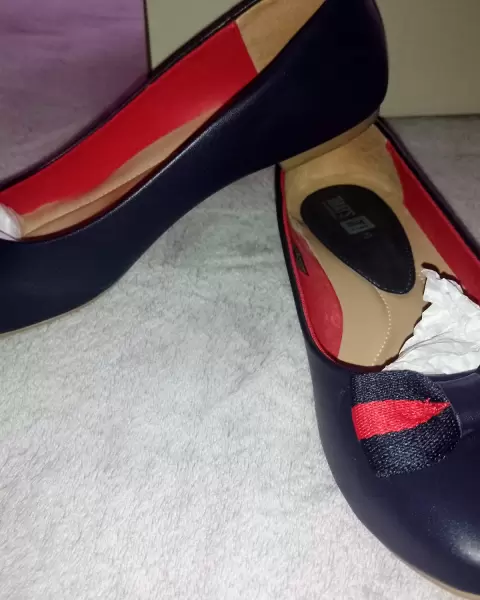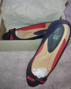 Flats formales. Hermosas Flats en color azul marino y moño rojo, ideales para combinar con vestido o jeans.Puestas 1 vez, en perfecto estado.