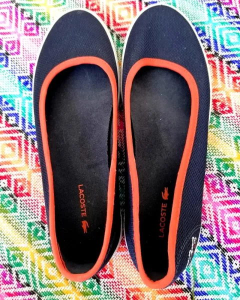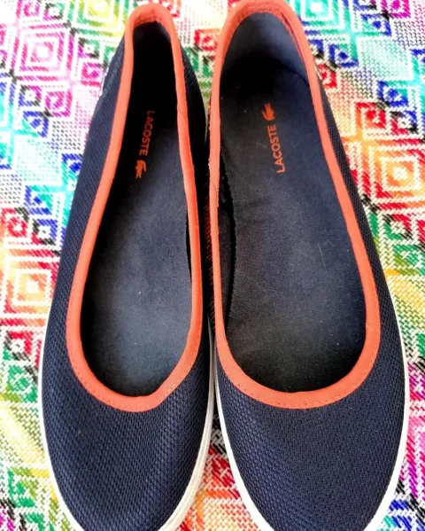 Flats lacoste originales. Tienen unas horas de uso // 22 mxn pero considero que van bien hasta a un 23 por que vienen amplias // super comodos // azul marino con naranja // sin detalles