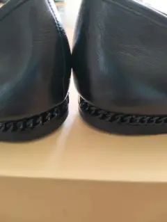 Bonitos FLATS negros con punta de charol de piel y suela de cuero tacón con adornos de cadena