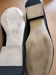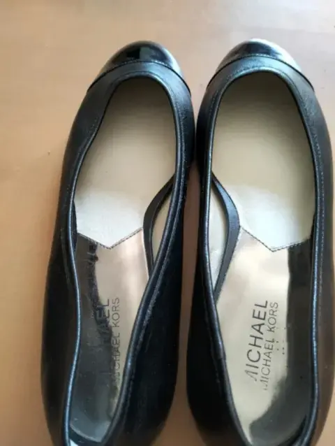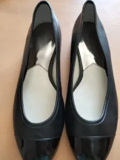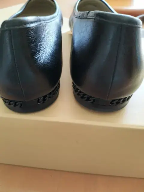 FLATS NEGROS CON PUNTA DE CHAROL. Bonitos FLATS negros con punta de charol de piel y suela de cuero tacón con adornos de cadena