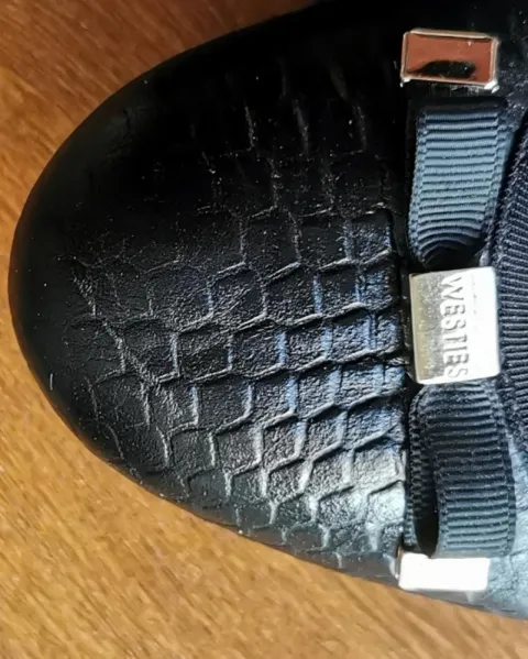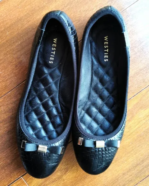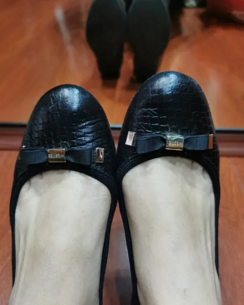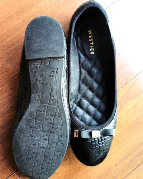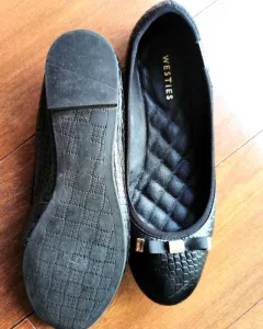 Flats negros WESTIES 24.5. El único detalle es una pequeña marca de maquillaje que no le pude quitar, ver última foto.Fuera de eso está en buen estado y se ve muy linda sobre todo para ir a la oficina o alguna ocasión formal :)Si tienes dudas te ayudo!!