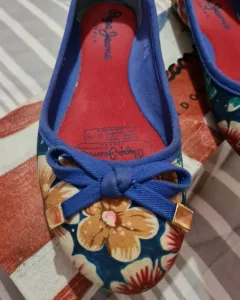 Flats de tela tipo algodòn con estampado de flores, azul rey es el color predominante, talla 22 mexicano, viene fiel a su talla.