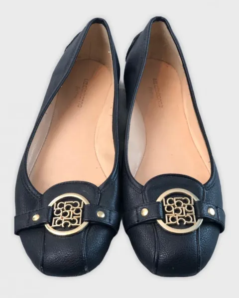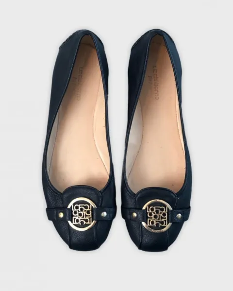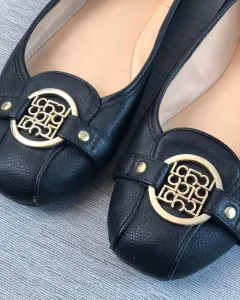 Padrísima a flats en color negro con logo dorado en la parte de enfrente, son de piel y solo tienen una puesta, está prácticamente nuevas.