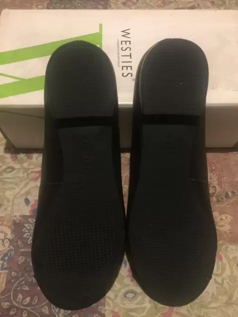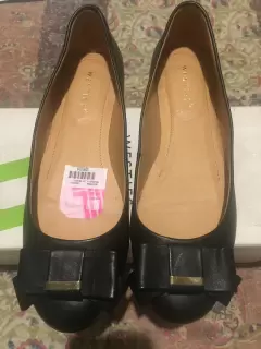 Flats Westies negras. Elegantes flats negras con aplicaciones metálicas doradas en tapa y en moño; hermosas y totalmente nuevas!!!