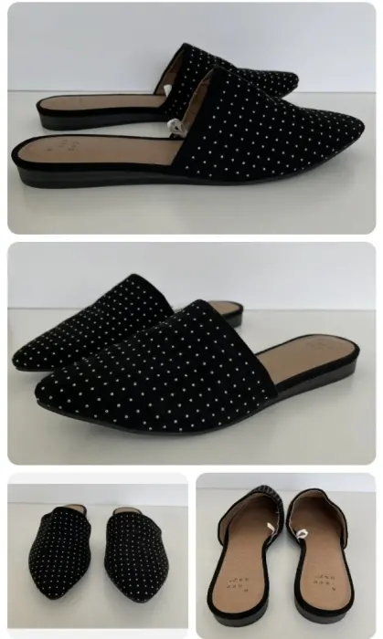 Mules de gamuza tachonado. Bonitos mules de gamuza tachonado, de punta. Son muy cómodos por estilo de suela. Estilo casual y Muy combinables para cualquier ocasión.