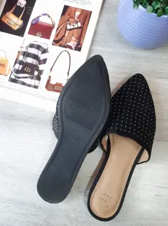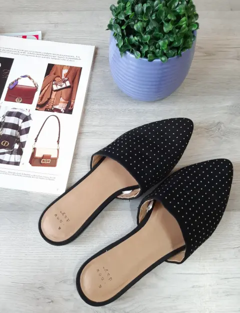 Bonitos mules de gamuza tachonado, de punta. Son muy cómodos por estilo de suela. Estilo casual y Muy combinables para cualquier ocasión.