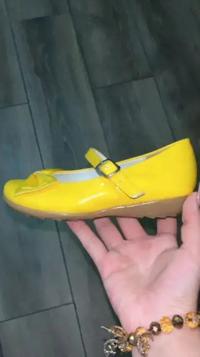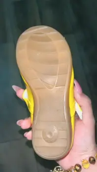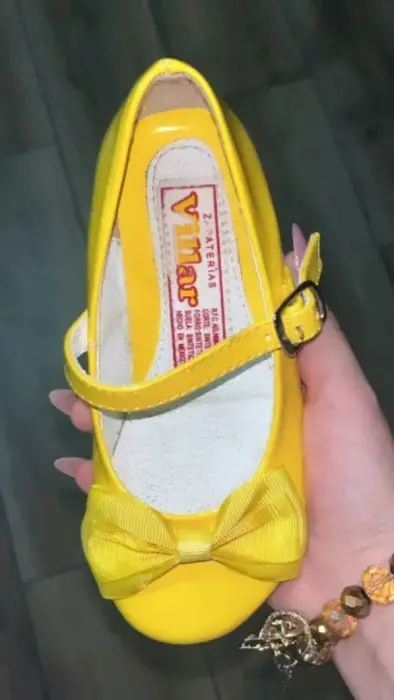 Estas zapatillas de niña son número 17, vienen un poco reducidos, tienen una sola puesta, están en excelentes condiciones. Son color amarillo.