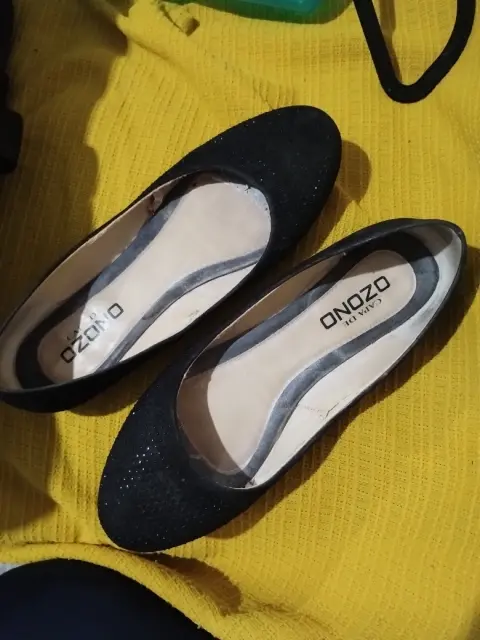Zapato. Zapatos negros de piso, marca Capa de Ozono, talla 6, usados,