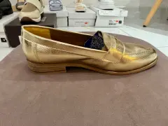 Zapatos. Zapatos dorado de piso Zapatos ideales para fiestas, reuniones, vestimenta elegante