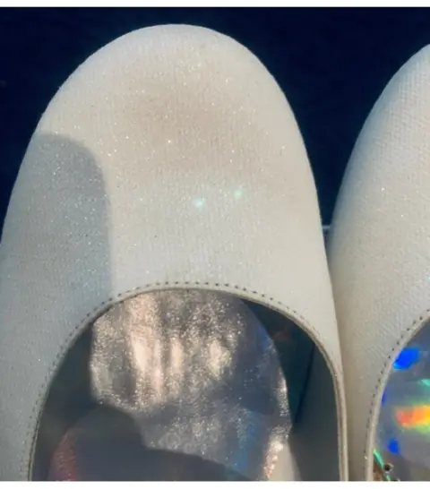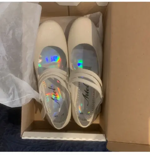 *NUEVOS* zapatos de piso, blancos con diamantina y aplicaciones al costado. Son del #5 , ideales para cambio de tacones a flats en fiestas!!
