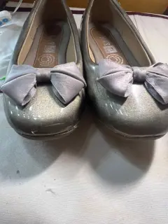 Hermosos zapatos de niña en color plata talla #21, tiene pequeño detalle en la punta que se alcanza a ver en la fotografía