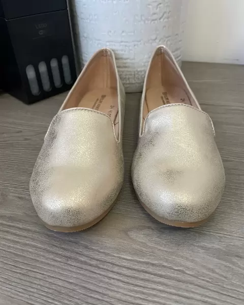 Hermosas y cómodas flats, talla 24, color dorado, súper suaves, son corte y suela sintéticos, están nuevas y sin detalles.