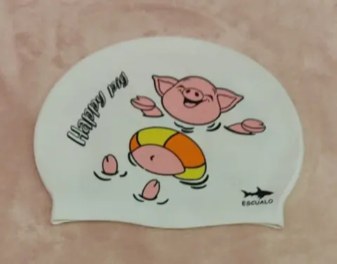 Gorro de natación silicona blanco. Gorro de natación silicona blanco con dibujo de cerdito