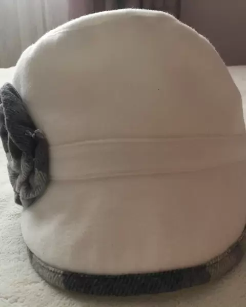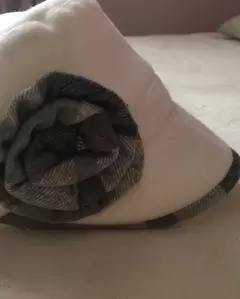 Boina beige con flor gris. Boina beige con flor a detalles cuadrados gris. Ideal para el invierno, suave y afelpada. Muy cute.
