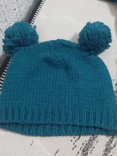 Talla chica, color azul, tejido con pompones incluidos en el tope. USO: De una sola vez. Está casi nuevo y en muy buenas condiciones.