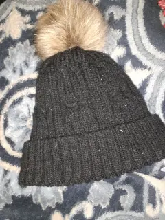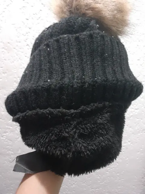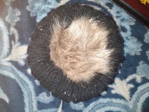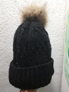 Gorro con pompón en la parte superior, sin costuras abiertas, en buen estado pero con bolas de pelusa