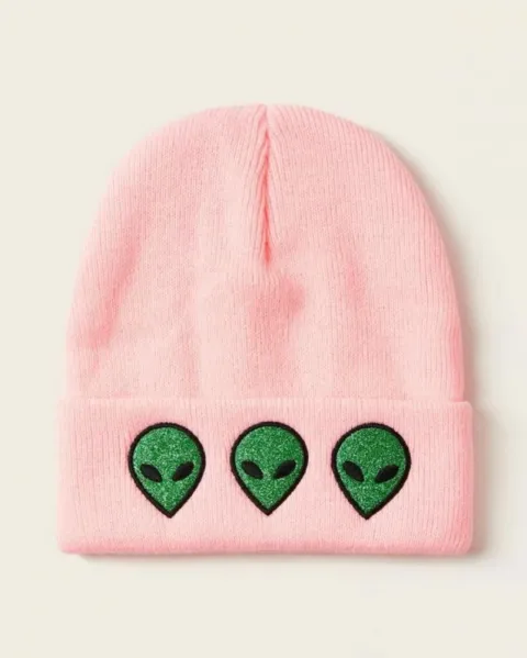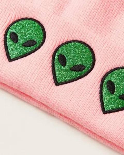 Gorro con estampado de extraterrestre rosa con glitter