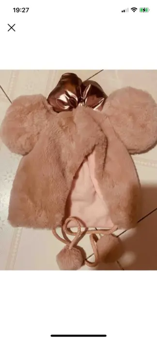 Gorro de mini hermoso. Gorro de peluche rosa de mini con moño metálico, traído de paris edición especial