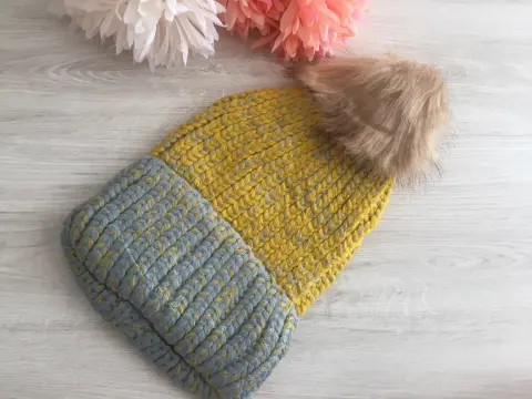 Hermoso Gorro tejido, muy calientito. Estira bastante, con pompón en parte superior