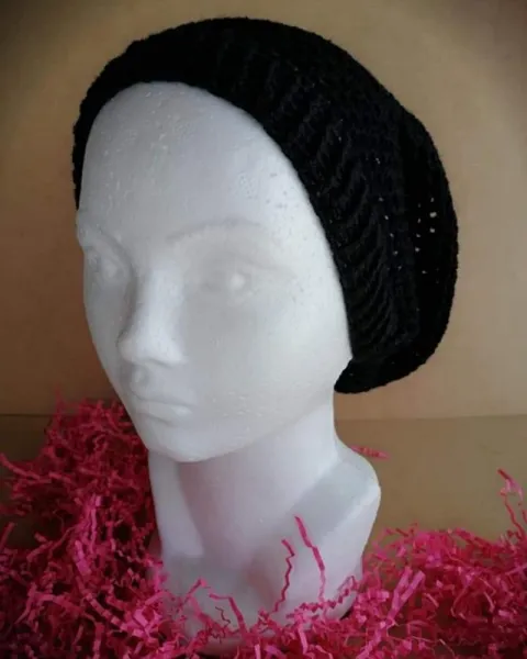 Gorro totalmente tejido a mano, color negroUnitallaLavar a manoNo usar secadora