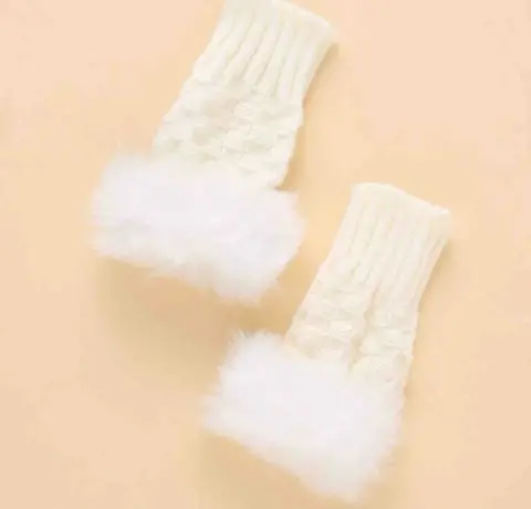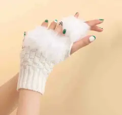 Guantes sin dedos tejidos color blanco con peluche Unitalla Nuevos sin detalles