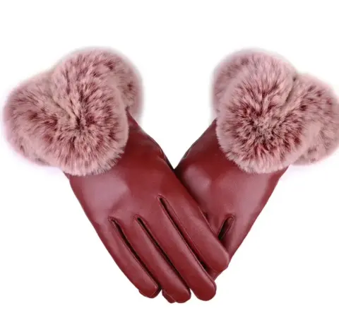 Guantes afelpados por dentro tipo piel color vino con pelucheUnitallaNuevos sin detalles