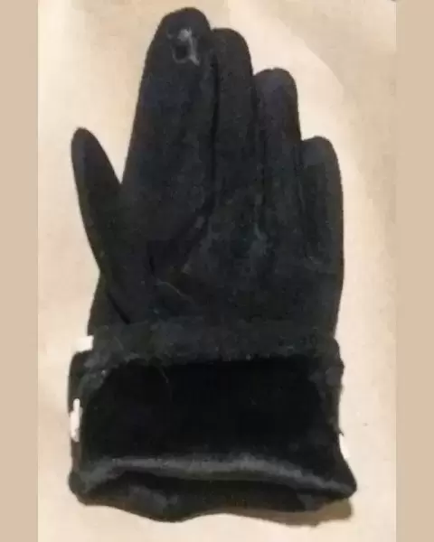Guantes de felpa color negro, con detalle de cafena y por dentro forrados de felpa. ¡Luce tus manos con elegancia!