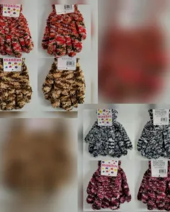 PAQUETE 4 pares de guantes en tejido de punto efecto deshilado en tonos MULTICOLOR (TIERRA, ROJOS, MORADOS, GRISES). Unitalla. 100% acrílico. Para lavado en casa.***POR LA COMPOSICIÓN, DAN DE SI Y QUEDAN A CUALQUIER TAMAÑO DE MANOS***