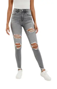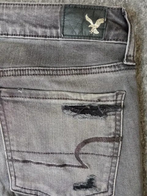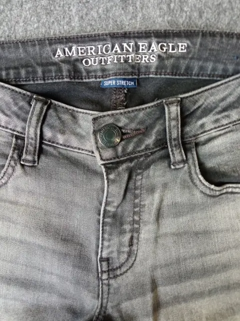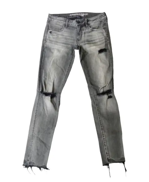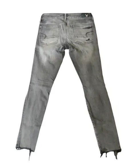 American Eagle Outfitters superlow.. American Eagle Outfitters superlow Women's Silver and Grey Jeans talla 6 regular.Súper elásticos, tiro muy bajo con dobladillo crudo desgastado. Nuevo sin etiquetas.Material: 58% algodón, 20% viscoso, 14% modal y 1% elastano. Medidas: 90 cm largo, 74 cm de ancho en cintura, 86 cm en cadera.