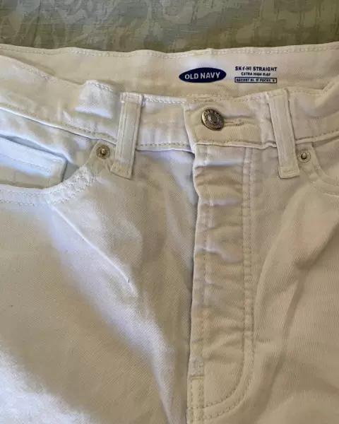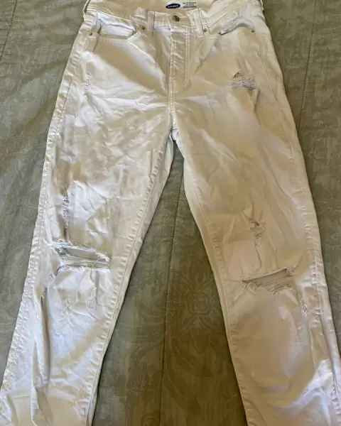 Descripción:Pantalón momjeans en color blanco, en perfecto estado solo lo use una vez marca oldnavy talla s