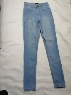 Jeans. Jeans entubado, azul mezclilla claro, bolsas traseras, talla 5, largo 100cm