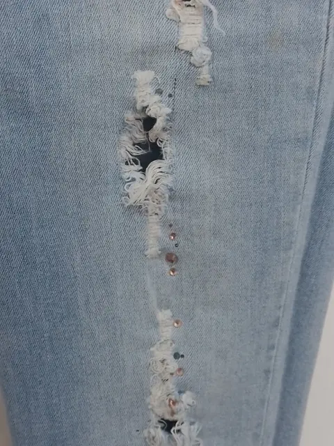 Lindos jean deslavados, con aplicaciones de pedrería, rasgados lo suficiente para lucir sexy.