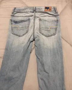 Jeans American Eagle talla “0 long” en buen estado, con un pequeño detalle en la etiqueta cómo se muestra en la foto.