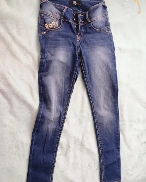jeans azul skiny bordados. hermosos jeans skiny talla 7 corte bajo, listos para realizar distintos outfits, visita mi closet y si te gusta mas de una prenda te armo un paquete 😃
