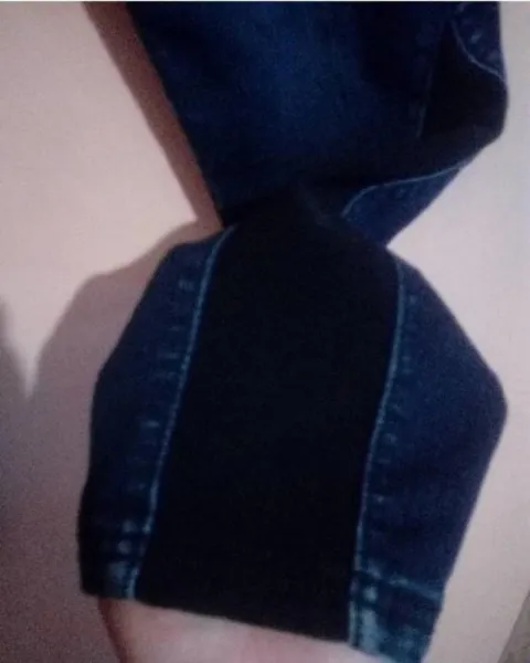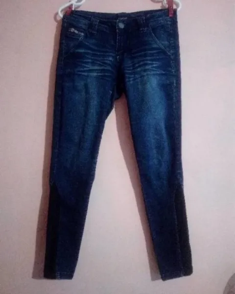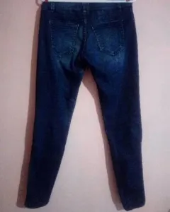 De mezclilla, entubados, quedan abajito del ombligo, de uso pero en buen estado ningun detalle grave que mencionar, tienen mucho stretch por lo que si eres delgada pero con cadera te quedarían perfectos, en la parte de abajo a los costados trae adorno de tela negra, talla S.