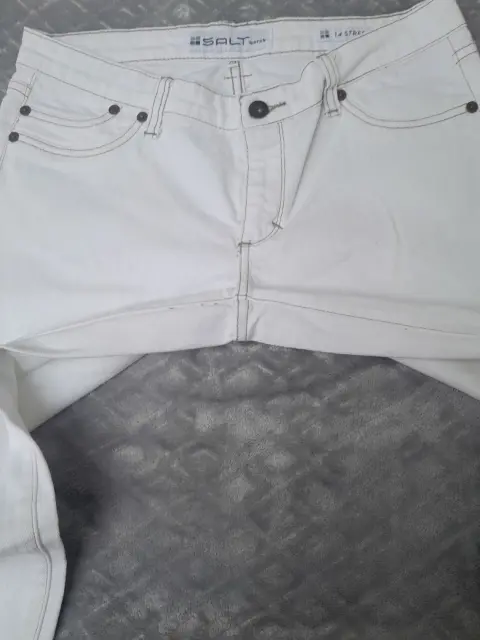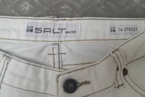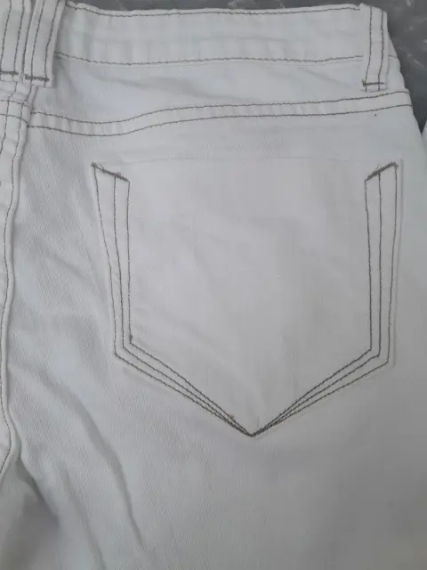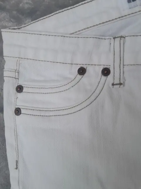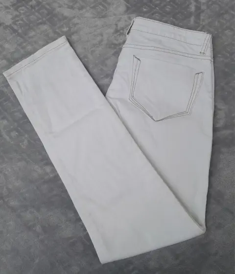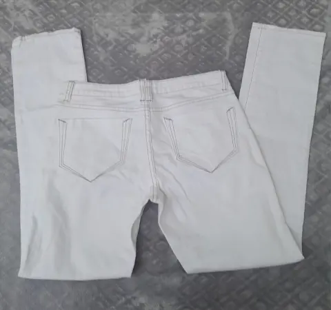 Lindos jeans blancos, talla29, con una pequeña manchita amarilla en una pierna en la parte atrás (se muestra en la foto) sin más detalles, muy cómodos.
