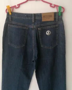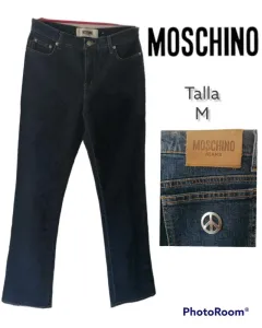 Jeans bootcut Moschino. Preciosos jeans originales, quedan a la cintura. Están en perfecto estado, sin detalles. Mezclilla stretch. Con insignia de metal incrustada en el bolsillo trasero.Medidas (cm): cintura 38 (estira a 41), cadera 46 (estira a 50), tiro al frente 25, tiro atrás 37, largo 112 (lo puedes mandar a ajustar a tu medida 😉)Corte ligeramente acampando.