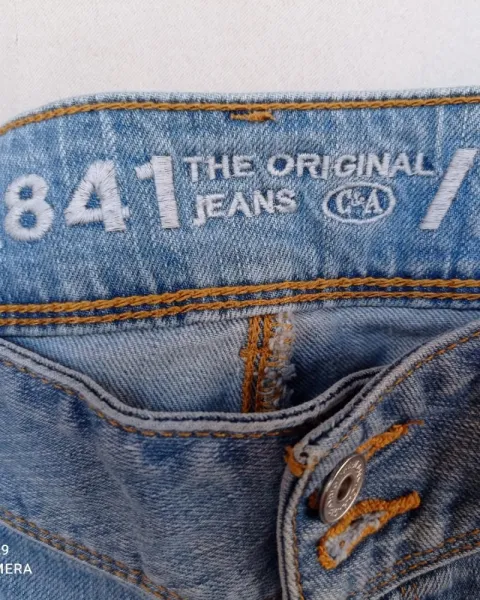 Jeans C&A. Jeans deslavados, no tiene strech, viene amplio, azul claro con deslavados.