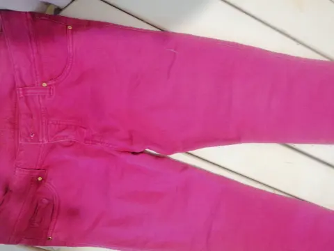 Jeans color rosa fucsia, en buen estado, marca Studio F, talla 12