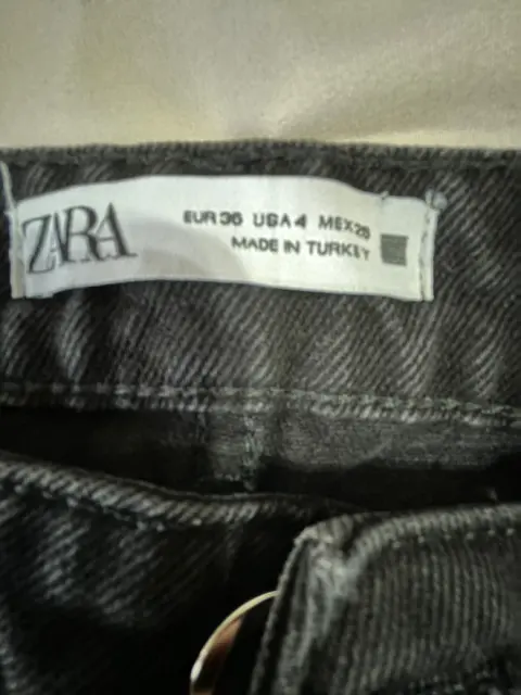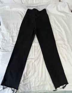 Jeans, negros, rectos, ajustados de la parte superior, tiro alto, con brillos a los lados