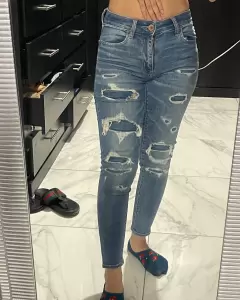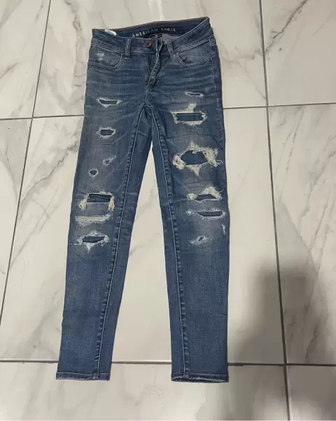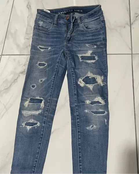 Jeans con desgarres. Jeans talla 00 detalle se descocio poquito un parche pero no afecta ya que se ve normal por el estilo