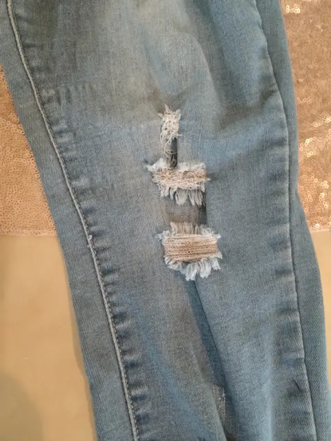 JEANS CON DESTRUCCIÓN. Geniales, tela suave al tacto, en buenaz condiciones, pantalón marca americana talla 17.