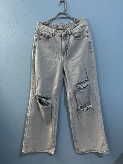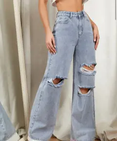 NO USADO. Jeans con diseño de desgarro de pierna, marca SHEIN. Talla M(7), largo: 109 cm, contorno cintura: 76 cm, contorno caderas: 106 cm, Muslo: 64.2 cmViene en bolsa de SHEIN como fue recibido ya que no fue usado, debido a que las tallas del primer comprador no coincidían.PRECIO ORIGINAL (SHEIN): $610.00