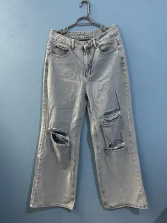 NO USADO. Jeans con diseño de desgarro de pierna, marca SHEIN. Talla M(7), largo: 109 cm, contorno cintura: 76 cm, contorno caderas: 106 cm, Muslo: 64.2 cmViene en bolsa de SHEIN como fue recibido ya que no fue usado, debido a que las tallas del primer comprador no coincidían.PRECIO ORIGINAL (SHEIN): $610.00