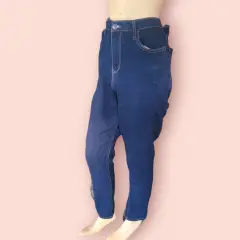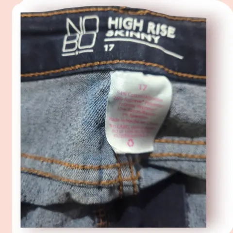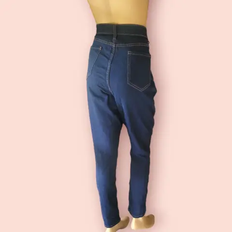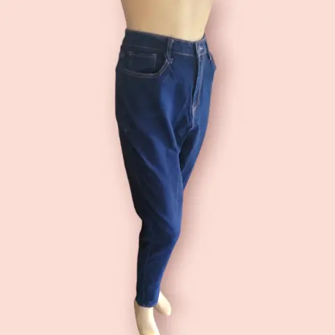 Jeans Entubados No Boundaries, talla 40, color azul marino solido, estilo clásico con 5-bolsillos, pretillas para cinturon, cierre y boton metalico, tiro alto, hecho de algodón y poliéster, mide 40cm de cintura, 52cm de cadera, 72cm de entrepierna con 102cm de largo de la cintura hacia abajo en buen estado cosmetico.