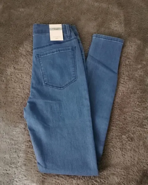 Jeans Skinny high rise, no cuenta con ningún detalle, es nuevo con etiqueta.Tiene muy poco strech por lo que quedaría bien para una talla 25 o 24 mx.