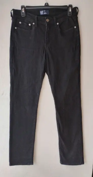 Jeans negros marca GapCorte recto tiro altoTalla S- M 28 regularUsados un par de veces sin ningún detalleColor al 💯👌 miden39 cm cintura, 46 cadera, 24 tiro, 1 metro largo